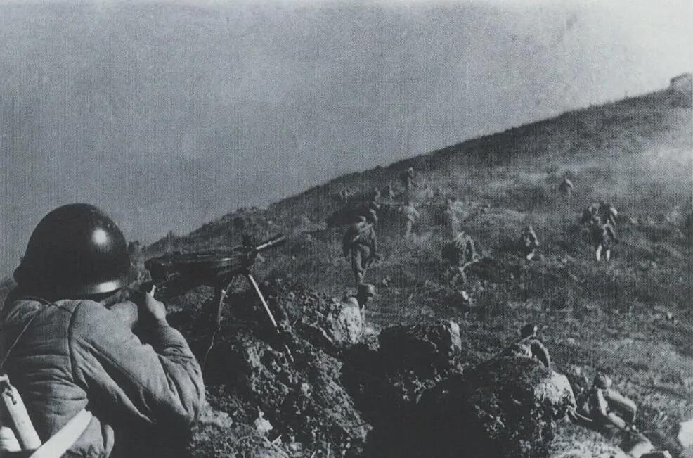 上图_ 登陆部队向一江山岛制高点203高地冲击